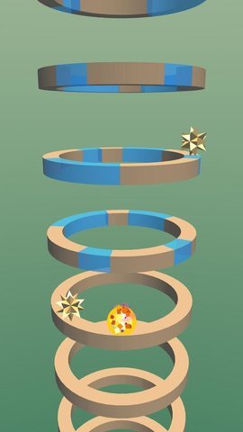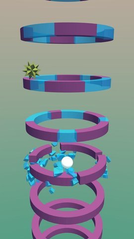 游戏的玩法跟螺旋跳跃Helix Jump很相似,不过方向刚好相反,玩家需要控制一颗小球,从下方向上冲刺,通过指定颜色的色环区域,才能够让圆环破碎,连续破坏圆环,从而让自己保持高速上升,坚持更久的时间。