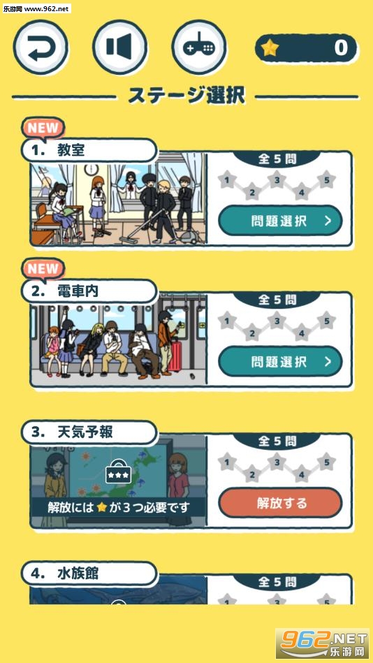 2、设置50多道测试关卡,每个主题场景不同,都是你熟悉教室、电车、水族馆、球场等地点。