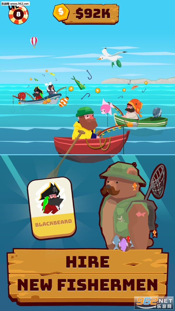 《渔民帝国安卓版》这是一款放置玩法的钓鱼模拟手游。玩家需要点击屏幕,即可控制渔夫钓鱼。而且收集的金币,可以解锁更加强力的装备和渔夫。游戏上手容易,感兴趣的玩家可以下载体验!