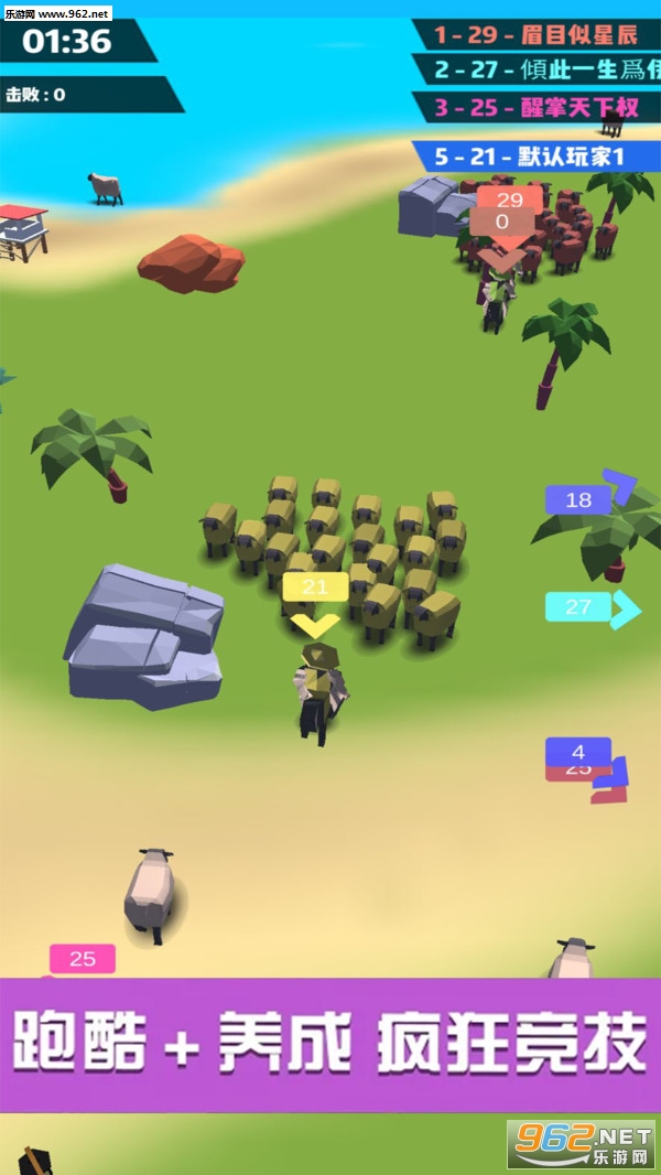 《拥挤城市大战安卓版》这是一款玩法欢乐的休闲io竞技手游。玩家需要操作牧羊人,吸引更多散落的绵羊,或者吞噬其他玩家的羊群,争取赢得比赛的胜利。游戏上手容易,感兴趣的玩家可以下载体验!