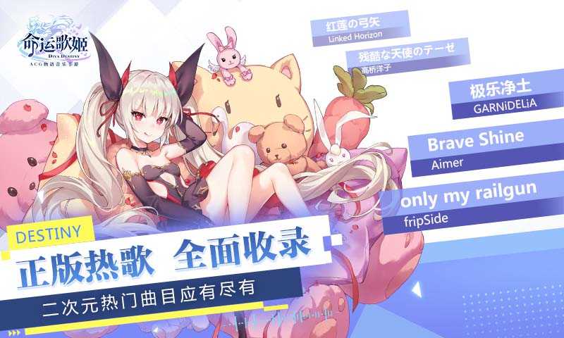 《命运歌姬》的曲库中收录了海量正版ACG名曲,并同步还原原曲舞步,带来原汁原味的视听享受。无论是火爆全网的“极乐净土”,还是新晋神曲“桃源恋歌”,都能让你沉浸其中。更有初音未来及其伙伴的经典歌曲等待探索。同时,游戏还邀请了茅野爱衣、松冈祯丞、杉山纪彰、内田真礼和田中理惠等超一线声优加盟,为二次元异世界增添更多惊喜。
