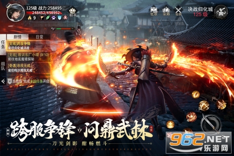 多人协作玩法:5人/8人团本、跨服阵营战(古战场、响马之争)、公平推塔竞技等,强调团队策略与操作配合。