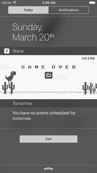 游戏的方式与桌面版无二,点击恐龙即可开始游戏,努力让它跳过所有仙人掌吧,晒分党可以在地铁手机没信号的时候放肆去截图并在出站后秀个优越。