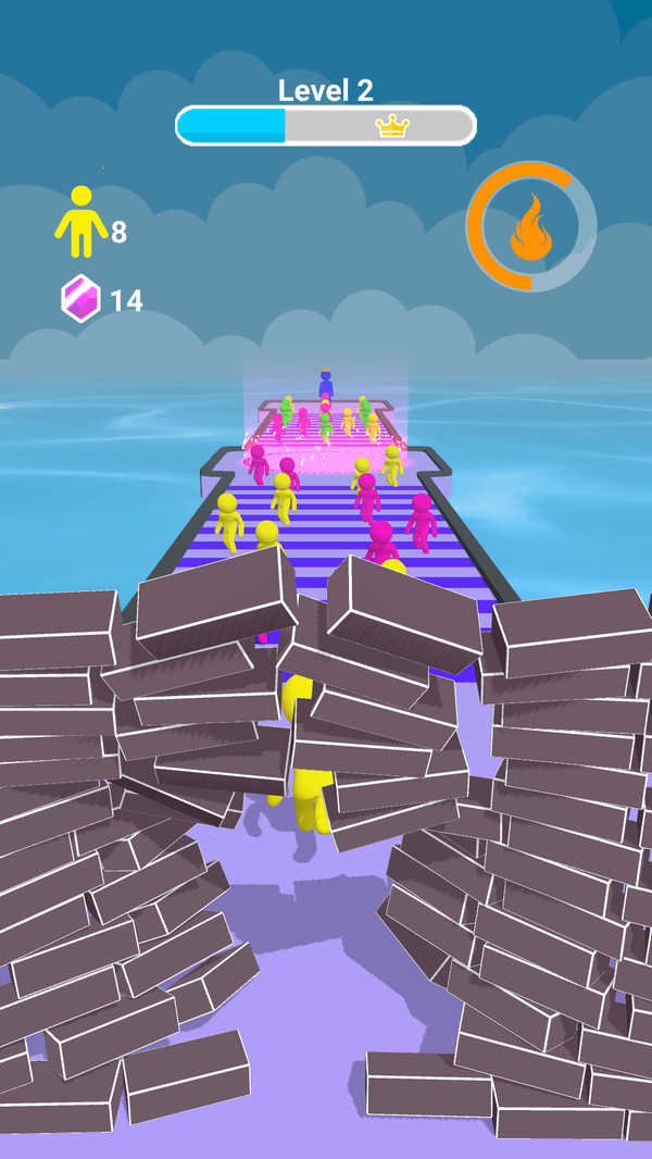 1、创新性地结合了跑酷与收集玩法,玩家需要一边搜集同色小人,一边躲避障碍,最后与敌人展开激烈对决;
