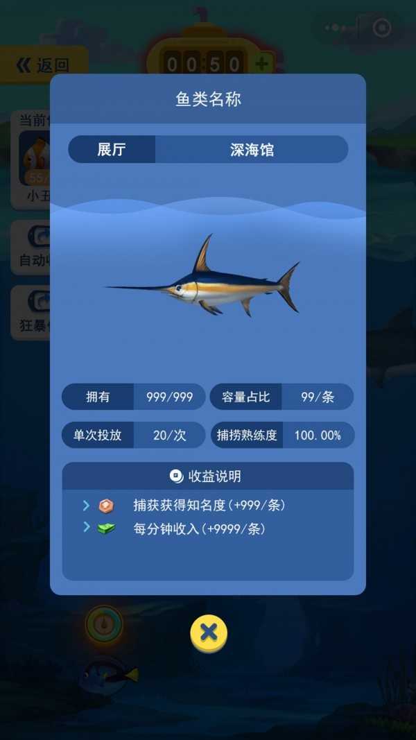 3、沉浸在游戏的世界中,感受放松的乐趣。游戏操作简单易懂,不仅需要装饰鱼类的家园,还需要吸引游客,提升场馆的知名度。