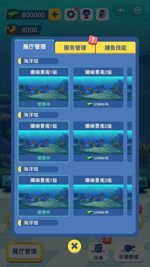 2、作为馆长,你需要亲自设计每一个细节,从巨型屏幕水族馆到每一层展馆的布局,都将由你亲手打造,实现心中的梦想水族馆。