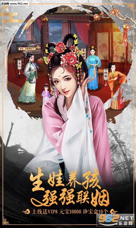 2.上线福利:上线VIP8、元宝*1W,珍宝盒*10