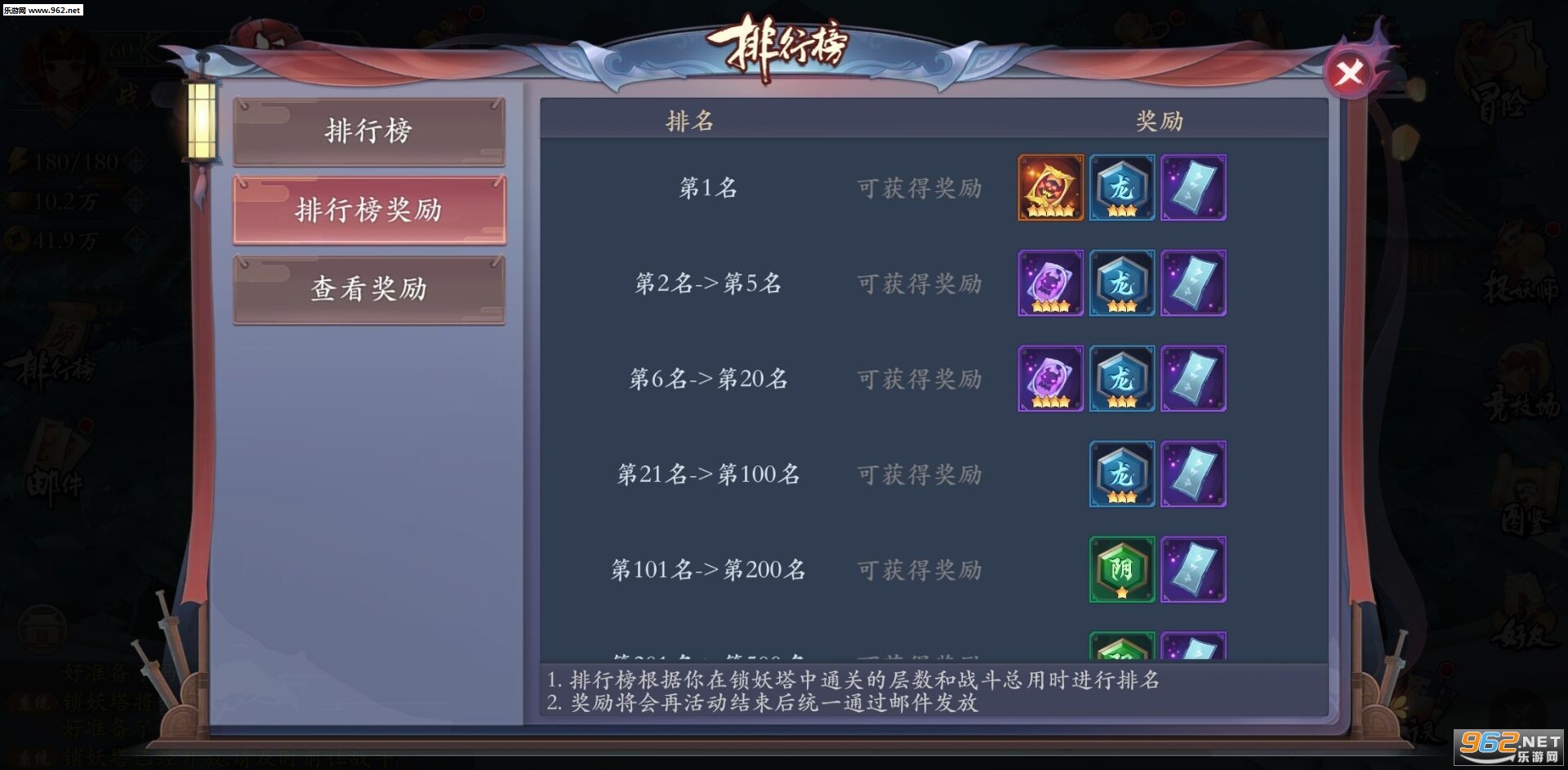 作为一个全民策略大挑战活动,肯定不会缺少排行榜,锁妖塔活动采取层数和通关时间两个维度来计算排名,若想获得更高名称,捉妖师不但需要考虑怎么通关,还需要考虑怎么样更快通关,由于目前只有我一个人打了,所以肯定是第一名了。