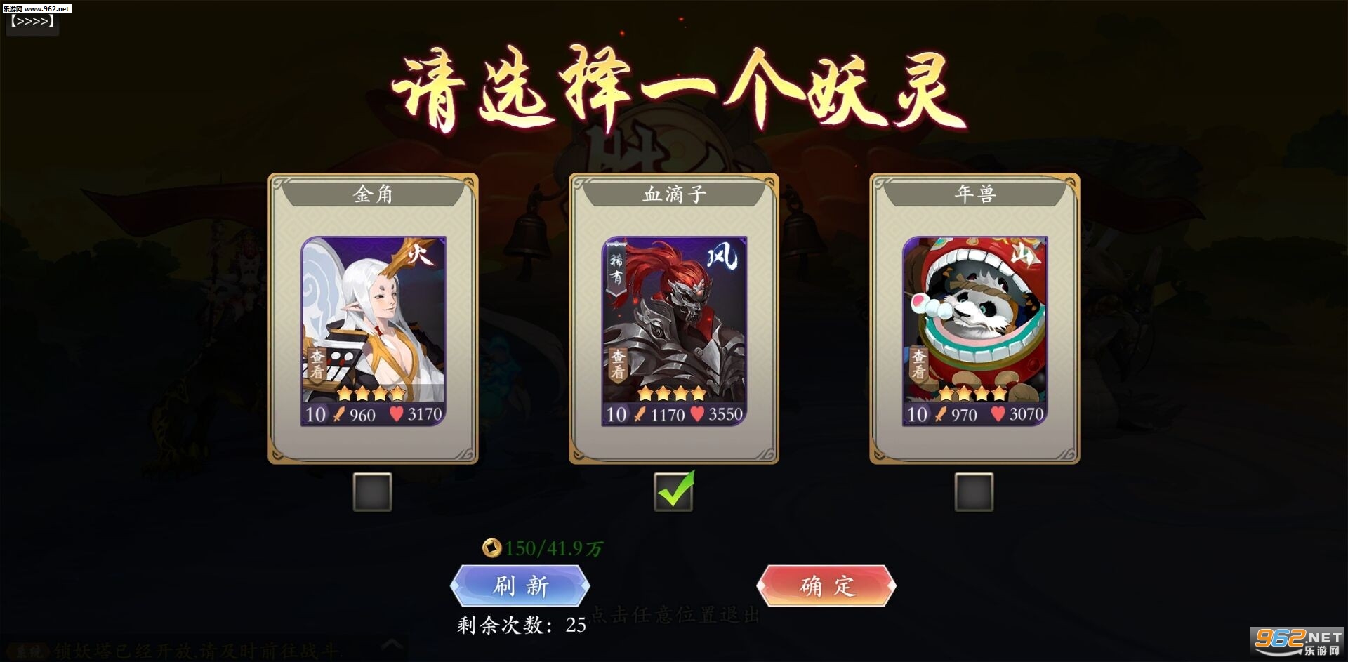 每层战斗胜利后,都会随机刷新出三张妖灵卡牌或者三个法宝,玩家可以从中获得一个新的妖灵或者法宝,如果卡牌并不是自己需要的还可以通过刷新自由更换,通关的层数越高,战斗结束后可选的卡牌或者法宝的品质越高,包括传说妖灵和高星法宝都可以获得。