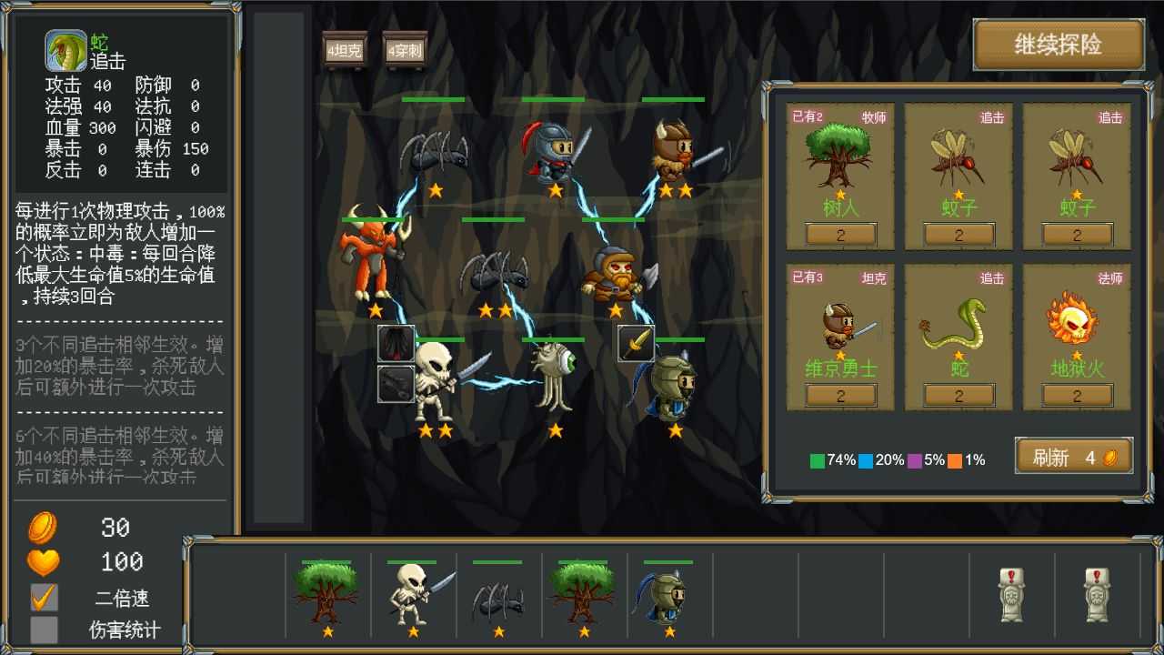 战斗采用类自走棋玩法规则,怪物具有不同的属性、技能、职业等。