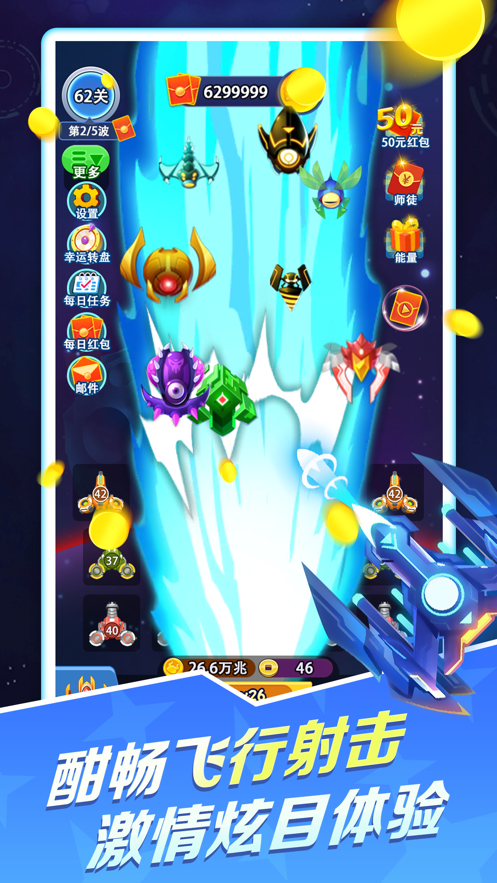 游戏操作简单,易于上手,努力积累资源即可不断抽取结晶转蛋,免费获取更强力的武器装备,让你的战机战斗力飙升!