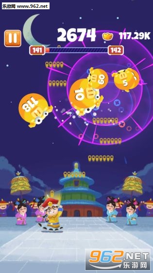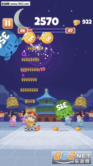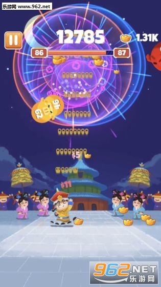 在《收钱吧皇上》里不仅需要射击消灭出现的大小猪头,还要躲避掉落下来的猪头,通过升级,可以让你拥有更强大的攻击力,但是需要元宝购买,武器越强大,攻击力越强,但是猪头也越来越大,极具挑战性。