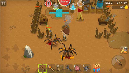 选一个靠近水塘的地方,放置营火与工作台,工作台放好后,在攻击”按钮上面就会出现工作台图标,点击即可打开工作台。
