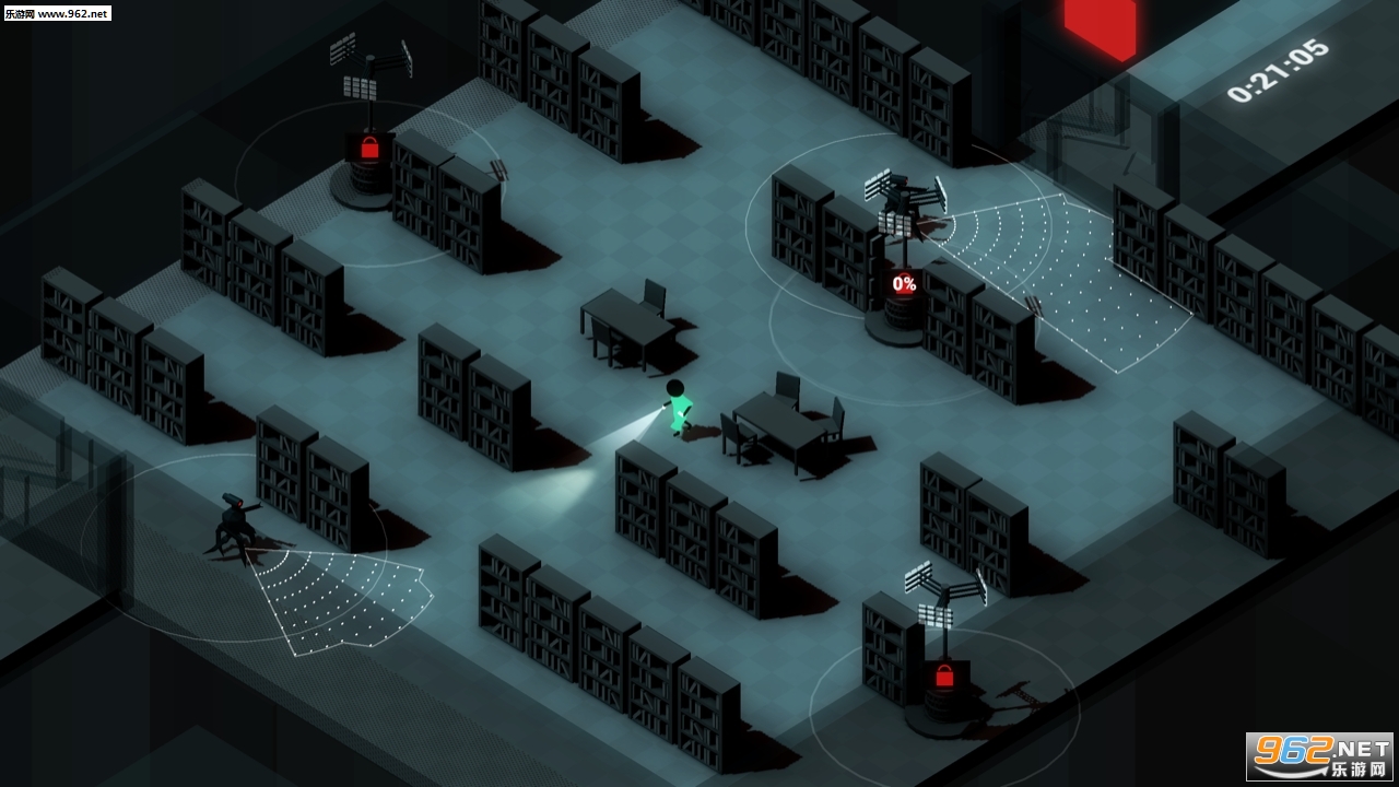 如果你被抓住(你肯定会被抓住一两次的啦!),时间就会减缓流逝。如果你的时间回朔能量足够,你就可以回朔游戏进程,更换路径,重新思考移动方式和策略,躲避敌人追踪。但行动一定要果决迅速!一定要在能量用尽,回到正常时空前逃离。