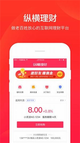 纵横理财app,这是一款非常不错的评估理财app,有着丰富的理财产品等着小伙伴们选择,提供稳定收益理财产品,这里就分享给小伙伴们了,在这里小伙伴们可以轻松的自己理财,享受金融的福利,实现财富的增长,喜欢的小伙伴们可以下载试试!