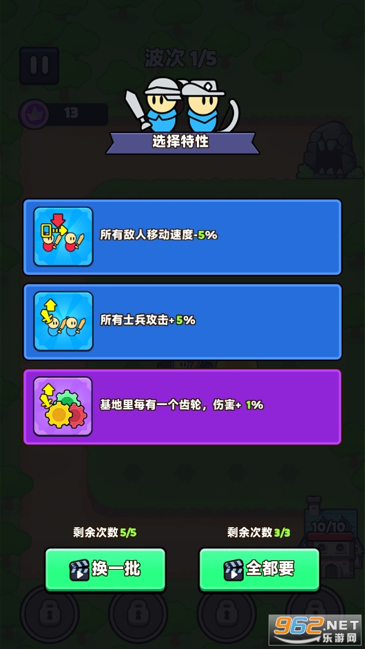 2、通过旋转轮子可以召唤士兵,武器