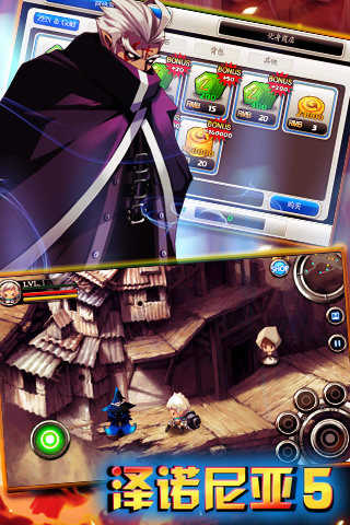 本作在操作上采用RPG游戏的经典方式,左下角利用虚拟摇杆控制人物走位,右下角5个按键控制人物攻击和技能,而四个技能键在外圈围绕这攻击按键,非常适合玩家的操作习惯。游戏在操作上将众多的功能按键都融合为一个很小的按钮安置在血条的下面,让屏幕看起来更加的干净整洁,而且战斗中的走位和技能控制都非常灵活,相信各位一定能感受到操作上的轻松和刺激