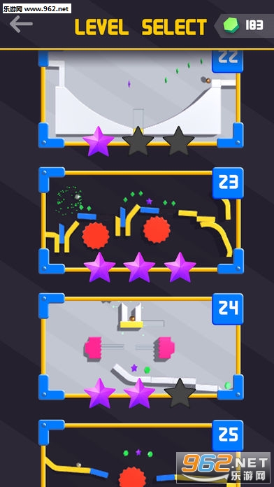2、上百个不同难度的关卡,合理的控制弹珠不停的前行
