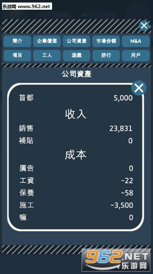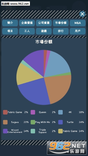 3、可随时查看公司的资产和市场份额,还有公司的排名;