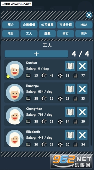 2、真实模拟游戏开发过程,从招募人员开始,都要为项目作出努力,分配人员,设置预算,收购公司等等;