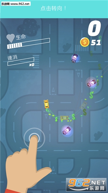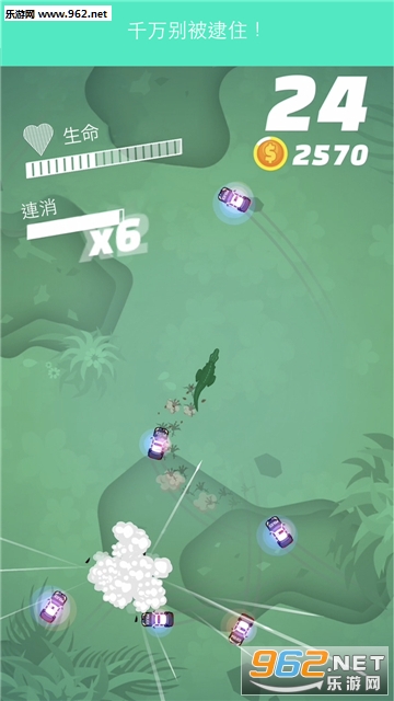 玩家要通过巧妙的急转,在警车的围追堵截中逃脱,注意拾取道具,帮助你存活得更久!