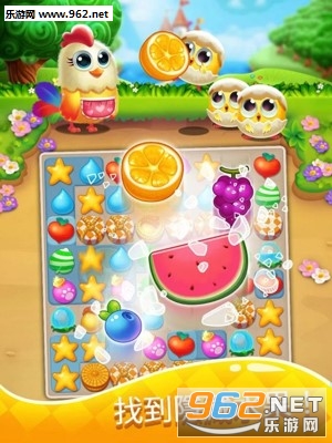 与可爱的小鸡家族开始世界冒险的旅程。交换并匹配3个或更多的五颜六色的水果使之爆炸。创建尽可能多的特殊爆炸水果,以清理整个水果盘,然后向朋友炫耀你在羽翼消消乐中的高超技能!