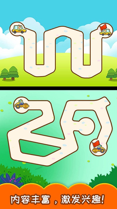 4,画面卡通欢快,制作精美,考验宝贝智力的时候到了,快来一起玩汽车迷宫吧!