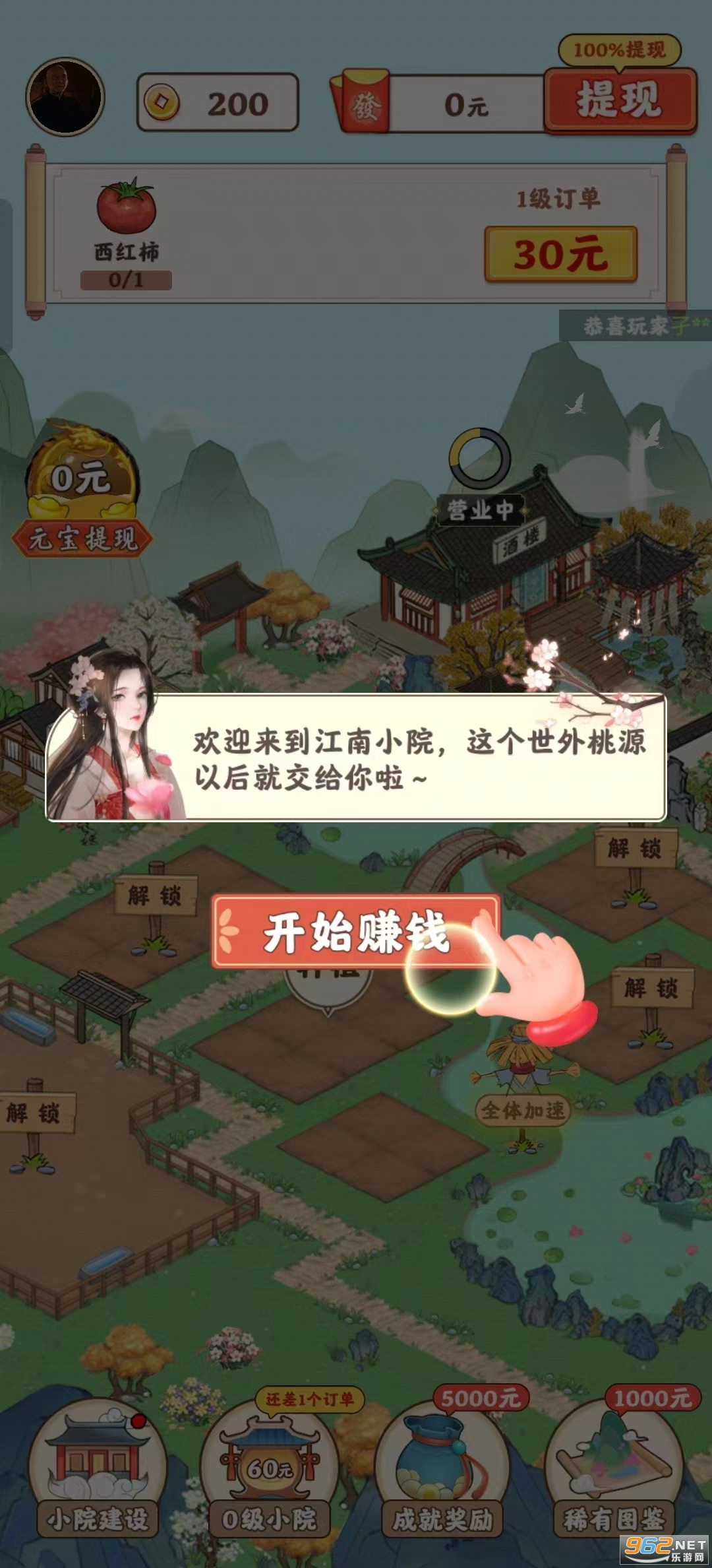 一个可以让你一边种田一边领红包的游戏,在江南小院红包版中有很多作物可以种植,丰富的田地等你去经营管理,各种设施需要你去升级,不断经营你的农家小院来领取更多的红包吧。