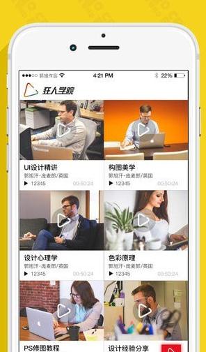 狂人学院app为设计而狂,狂人学院app平台引进国外先进设计理念,分享引领时代的设计趋势,通过扎实的直播教学课程,为零基础、上班族分别提供最优的PS、Ai、UI、平面、淘宝美工学习方案,狂人学院app让每个人成为设计狂人。
