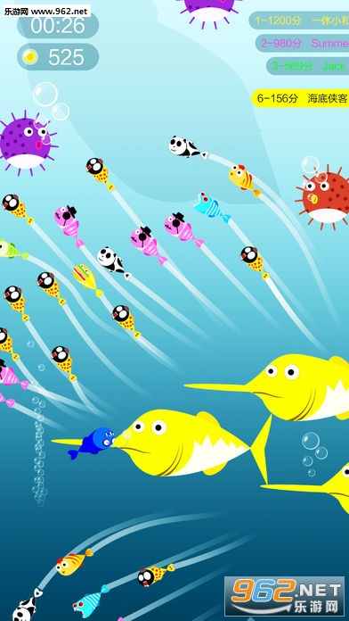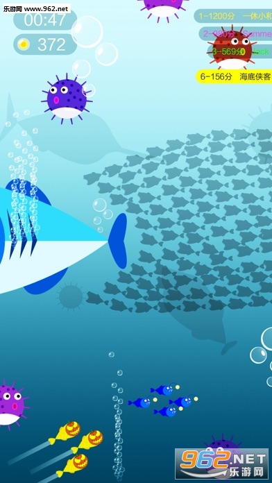 躲开陷阱,同化小鱼群,成为深海霸主。