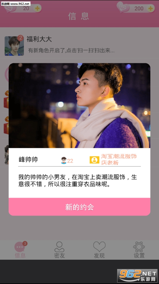 1、男友养成模式开启之后,每天都要帮助你的男神完成帅气的装扮,决定今天他的形成,约会,唱歌,还是逛街,或者看电影,随便你选择。