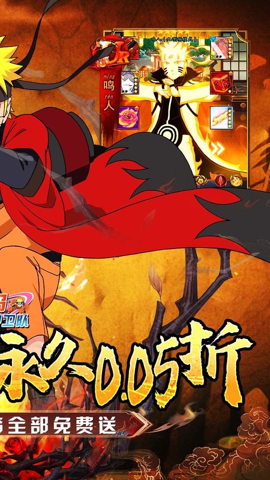 3、充值永久0.05折爽充,在线送—终极UR鸣人!超强技能,让你在战场上所向披靡!