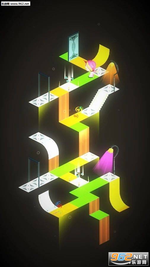 踩住,出现了路现在试试右边的绿光,终于成功到门口,等所有的光踩完,就能从绿光传送到门附近,进门