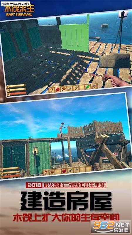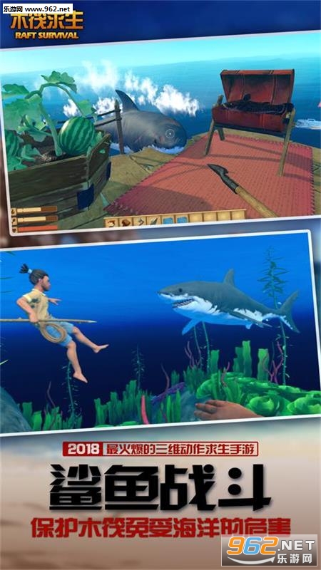 玩家需要通过自己的努力,收集资源、扩建木筏和对抗鲨鱼,保证自己生存得更久!