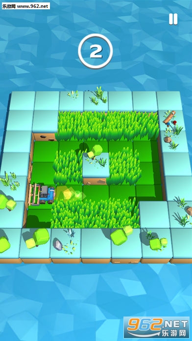 1、迷宫式的草地设计,玩家需要一次性全部割除;