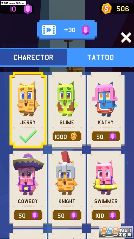 4、个性角色,通过钻石即可购买,点击观看广告可获得钻石。
