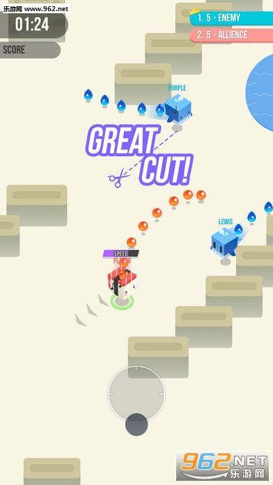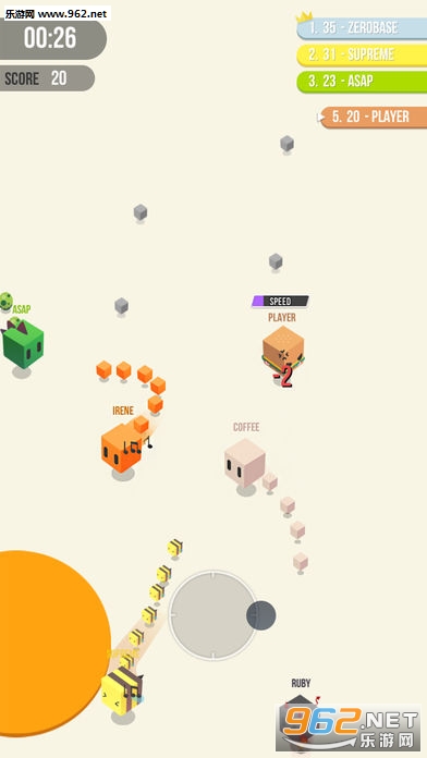 Cut.io一款画面非常清新的io类型的手机游戏,也是一款很是独特io的挑战了,手游中你要让你的角色尾巴变得更加的长哦。游戏中方块就是你需要吃掉的东西,能够让你的尾巴更长。