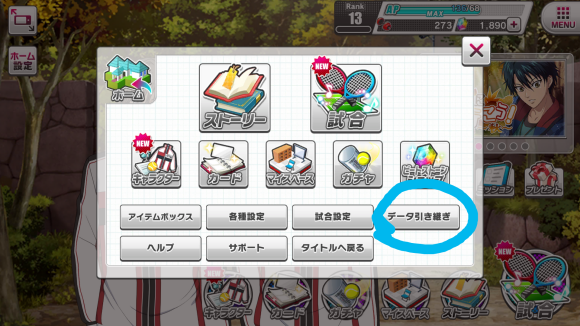 点开倒数第二排最后【データ引き継ぎ】