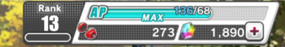 【AP】体力。每升一级自动会满体力,可溢出。