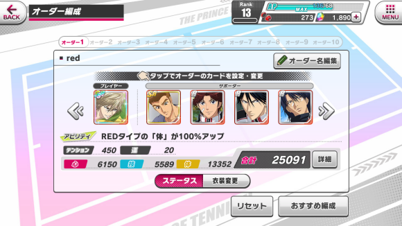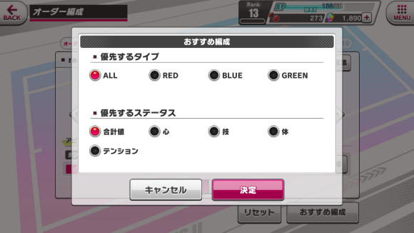 おすすめ編成:可按照卡牌属性系统自动编队