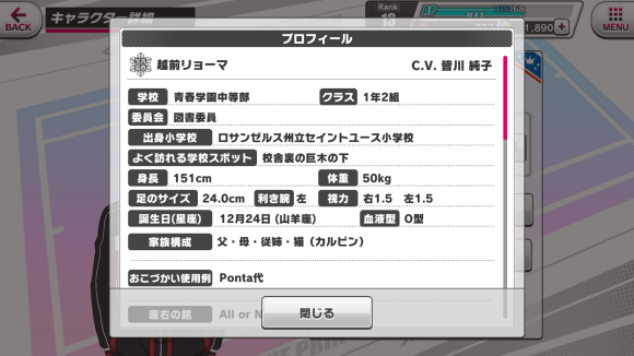 プロフィール:Profile。可查看该角色的介绍。
