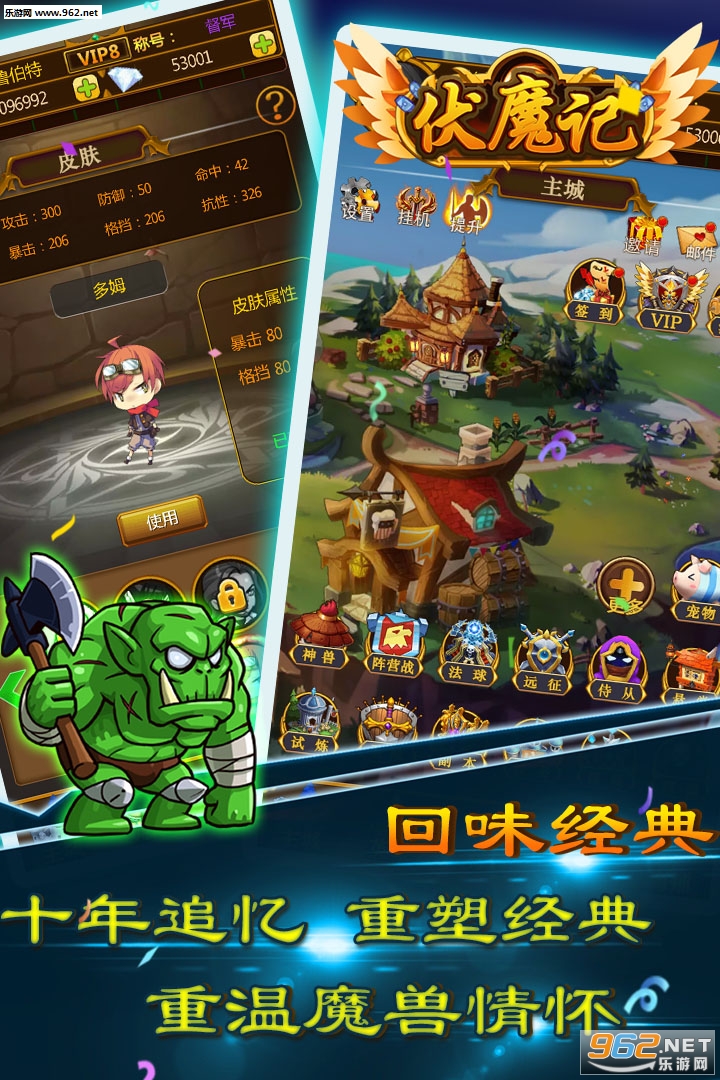 3、收集性强,上百种各种不同的装备,十多种套装,强力套装属性,满足你的收集欲望;