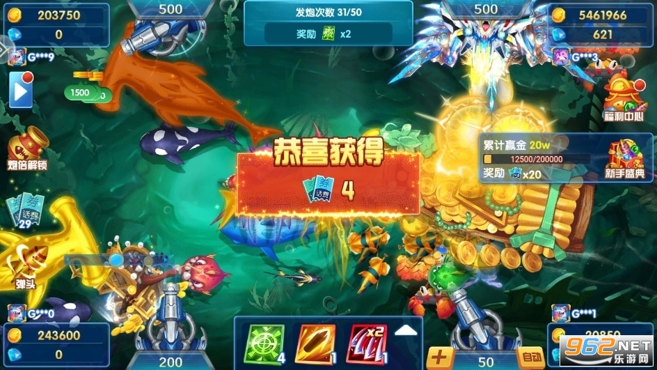 游戏原创“定点爆破”功能,使得玩家可方便锁定单类鱼群进行精确打击,妈妈再也不用担心我抓不到美人鱼姐姐啦!更有国内捕鱼类游戏中首创的“技能”系统让你事半功倍!一石二鸟,连锁闪电,全屏消鱼,哗哗掉金币,根本停不下来!
