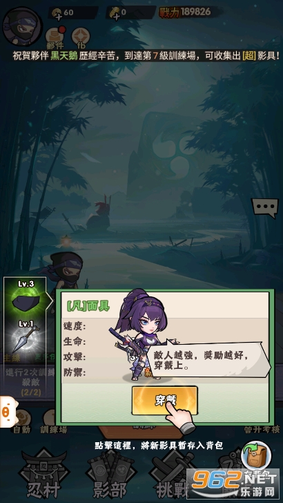 1.玩家在游戏中将扮演一名忍者,通过点击屏幕释放忍术,击败各种怪物和敌人,不断提升自己的实力。