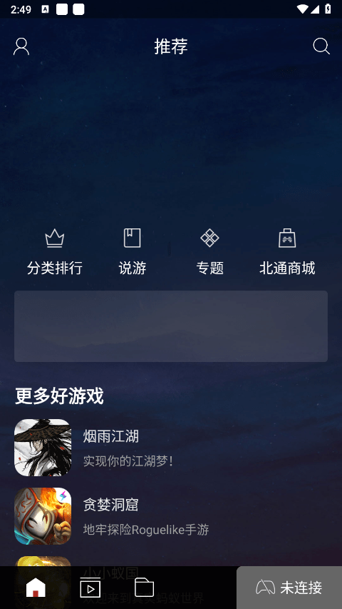 北通左游游戏厅官网app是一款非常好用、使用更加方便的手机游戏辅助软件。玩家可以通过它快速链接北通游戏手柄、支持模拟器游戏、海量热门手游随时下载体验、支持主流热门游戏、操作更加灵活、喜欢就来下载体验吧!