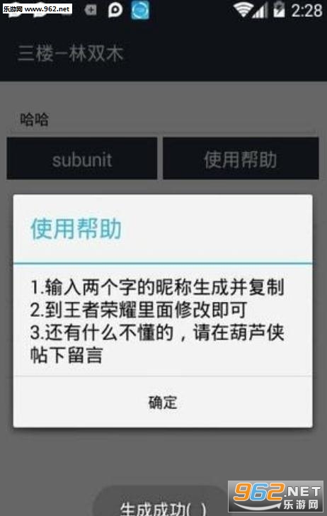 2.输入两个字的昵称生成并复制