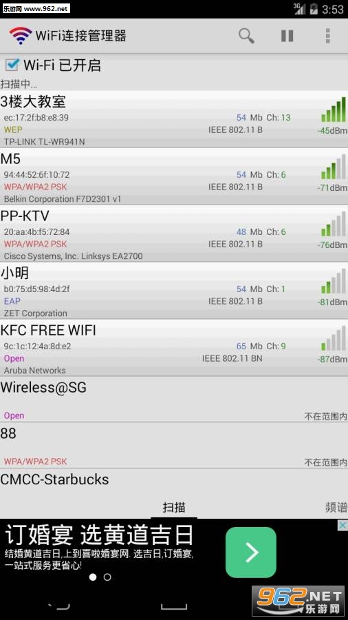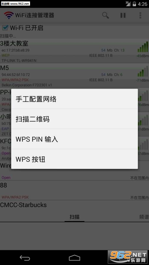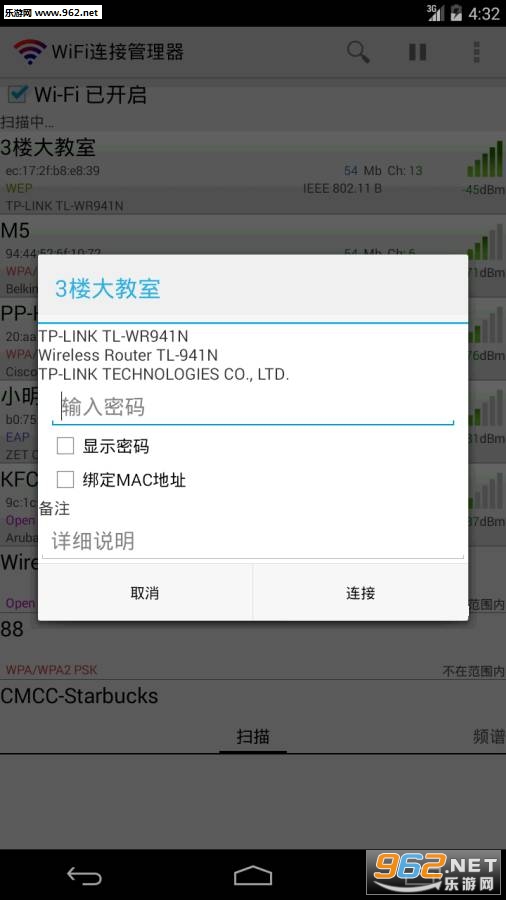 Android上优秀的wifi搜索连接程序,彻底解决无线网络不稳定、找不到、结果少、连不上的问题,具有以下特色功能。