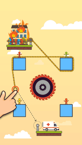1. 游戏采用简洁直观的操作方式,通过合理布置绳索,引导火柴人避开障碍;