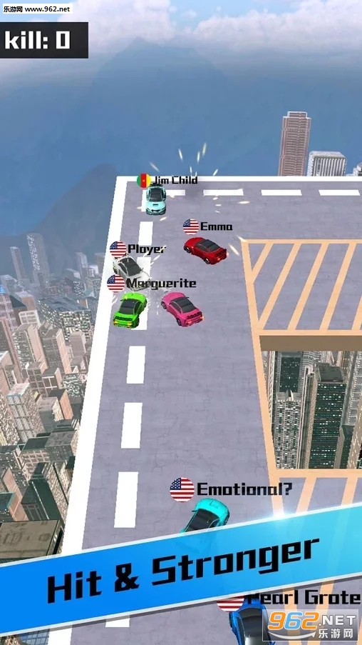 游戏中没一关的场景都是不一样的,玩家在这里要做的就是利用手中的碰碰车,快速的冲刺,移动 ,将其他对手的碰碰车撞下高楼,还要注意自己不要被撞下哦!