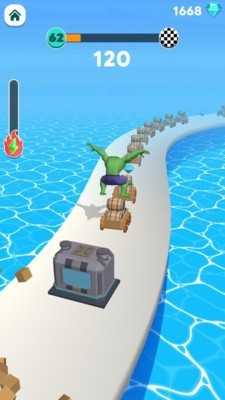 2、操作小人在穿过水上障碍,快速的前进,很多有特色的障碍让玩家进行挑战;